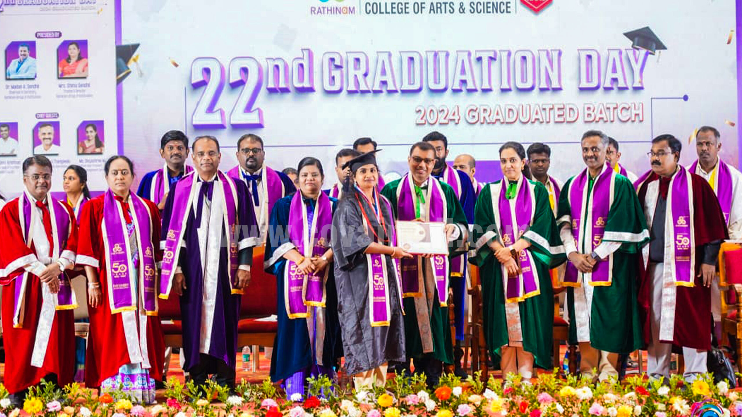 Rathinam College of Arts and Science organised its 22nd Graduation Day at the Rathinam Grand Hall recently, during which 1,380 students were conferred with degree awards in various disciplines.