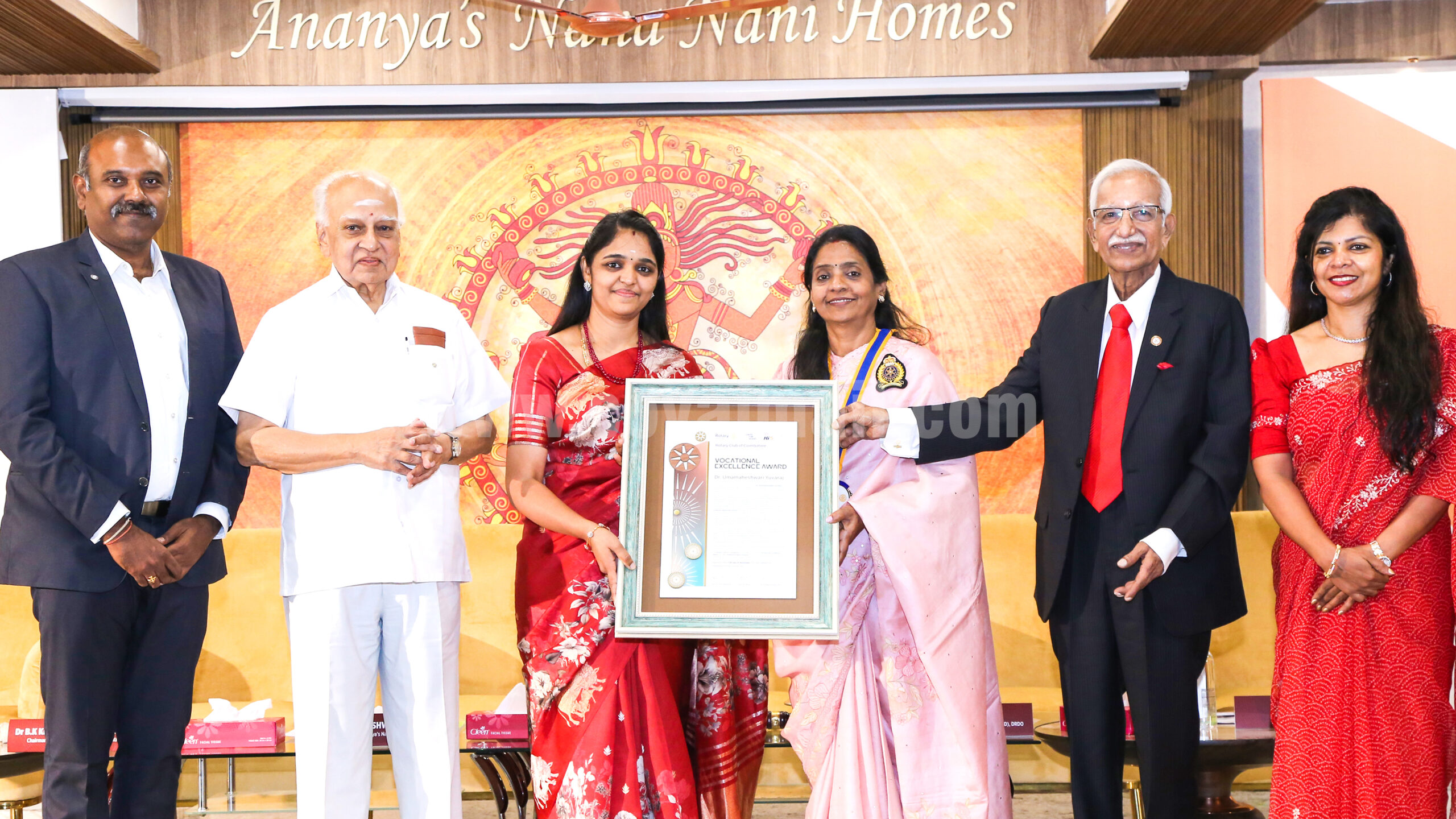 Umamaheshwari Yuvaraj, Director of Ananya’s Nana Nani Homes, was honoured with the Vocational Excellence Award by the Rotary Club of Coimbatore on 13th November 2025 at Nana Nani Phase 6, Thudiyalur.