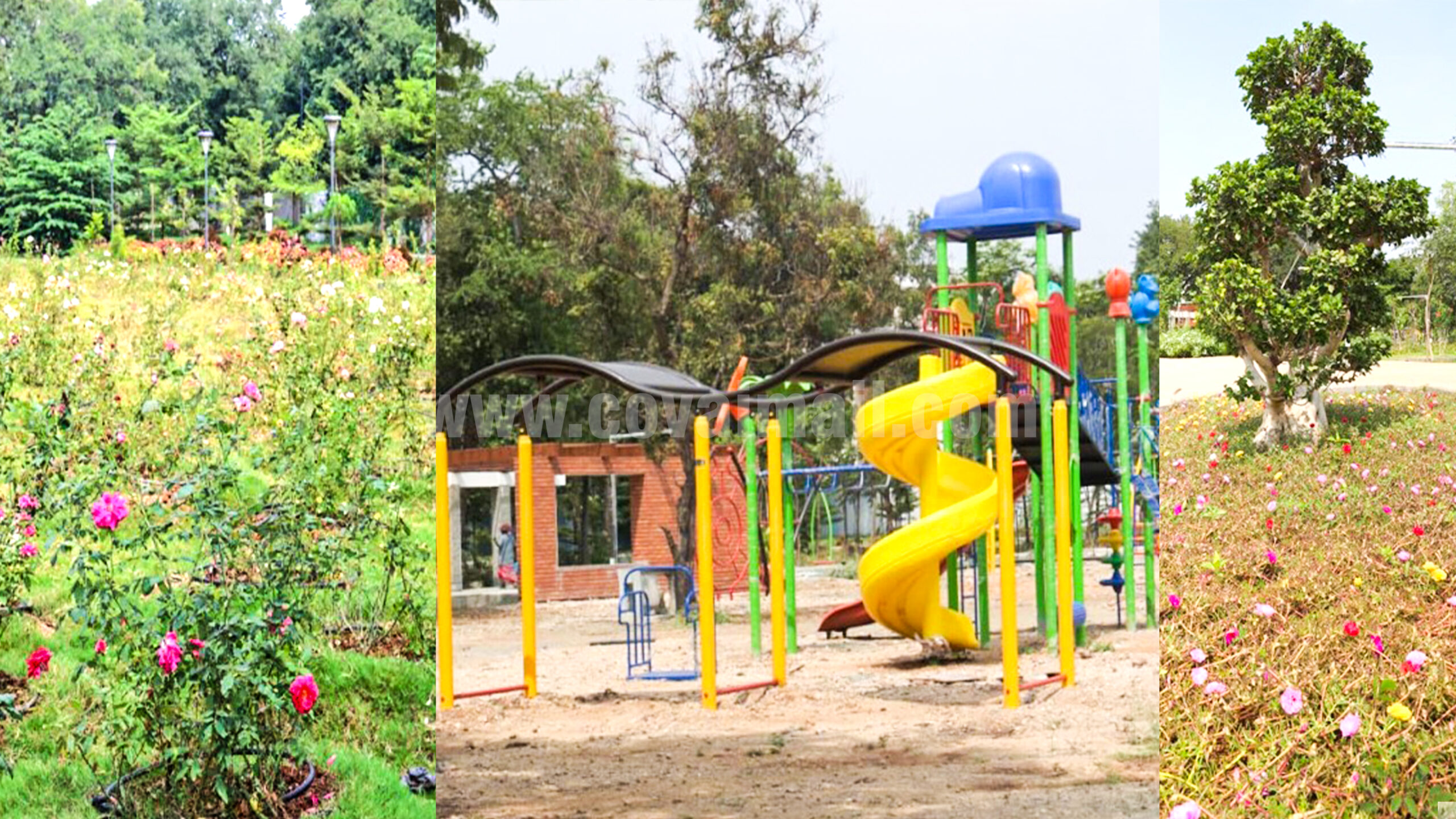பூங்காவில், செம்மொழி வனம், மகரந்த வனம், மூலிகை வனம், நீர் வனம், நட்சத்திர வனம், நலம்தரும் வனம், நறுமண வனம் என 23 விதமான பூந்தோட்டங்கள் அமைக்கப்பட்டுள்ளன. ராஜமுந்திரியில் இருந்து மரக்கன்றுகள் வரவழைக்கப்பட்டு நடப்பட்டு வருகின்றன. அதேபோல 100 வகையான ரோஜாக்களுக்கு வரிசையாக மூன்று இடங்கள் ஒதுக்கப்பட்டு வளர்க்கப்படுகிறது.