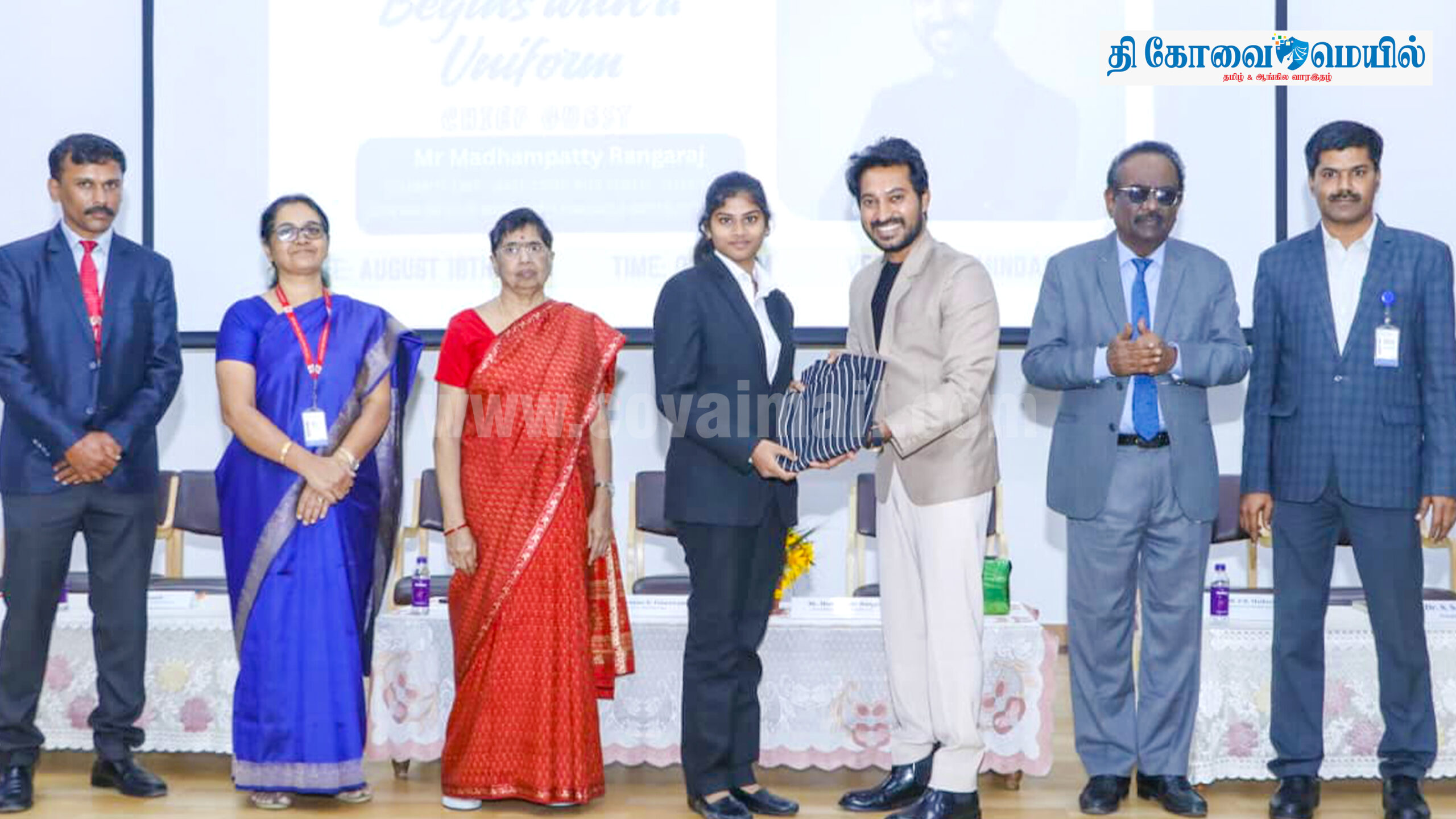 இதில் சிறப்பு விருந்தினராக மாதம்பட்டி தங்கவேலு ஹாஸ்பிடாலிட்டி பிரைவேட் லிமிடெட் நிறுவனத்தின் தலைவர் மாதம்பட்டி ரங்கராஜ் கலந்துகொண்டு சிறப்புரையாற்றி மாணவர்களுக்கு சீருடையை வழங்கினார். மேலும் இந்நிகழ்வில் கல்லூரியின் செயலாளர் தவமணிதேவி பழனிசாமி, இயக்குநர் முத்துசுவாமி, டீன் மீரா ராமன், முதல்வர் சரவணன், துறைத் தலைவர் பிரசாந்த் மற்றும் பேராசிரியர்கள் மாணவ மாணவியர்கள் கலந்துகொண்டனர்.