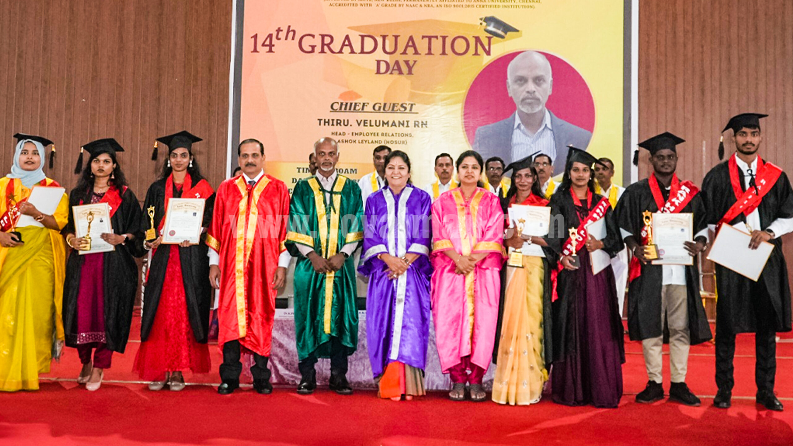 ஓசூரில் உள்ள அசோக் லேலேண்டின் ஊழியர் உறவுத் தலைவர் வேலுமணி தலைமை விருந்தினராகக் கலந்து கொண்டு பட்டமளிப்பு சான்றிதழ்களை வழங்கினார். நிர்வாக செயலாளர் பிரியா, கல்லூரி முதல்வர் நடராஜன், பேராசிரியர்கள் பங்கேற்றனர். பல்வேறு துறைகளைச் சேர்ந்த சுமார் 560 மாணவர்கள் பட்டம் பெற்றனர்.