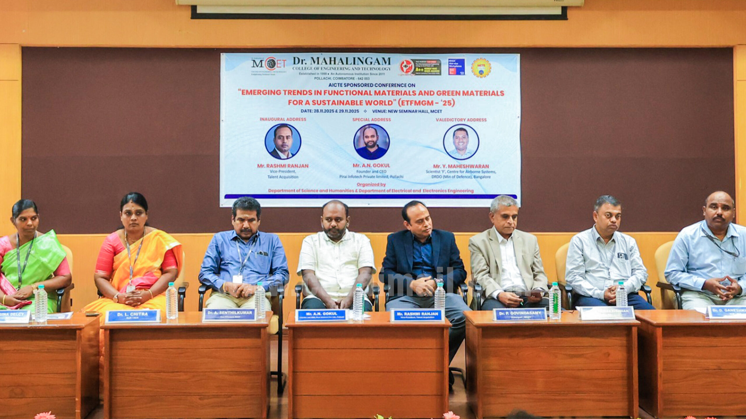 பொள்ளாச்சி டாக்டர் மகாலிங்கம் பொறியியல் மற்றும் தொழில்நுட்பக் கல்லூரியில் “நிலையான உலகத்திற்கான செயல்பாட்டுப் பொருட்கள் மற்றும் பசுமைப் பொருட்களில் வளர்ந்து வரும் போக்குகள்” என்ற தலைப்பில் கருத்தரங்கம் நடைபெற்றது.
