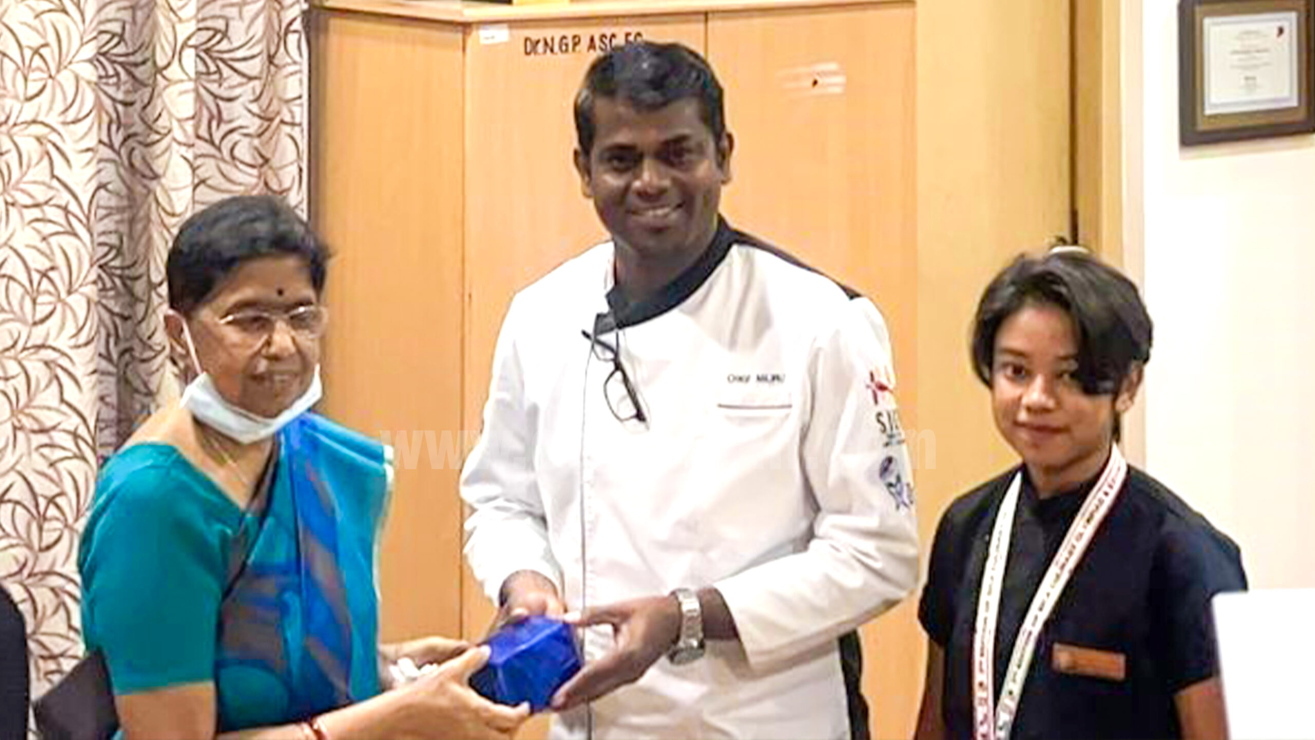 இப்போட்டியில் 50க்கும் மேற்பட்ட மாணவர்கள் பங்கேற்றனர். அன்னபூர்ணா குழுமத்தின் கே.ஓ.வி.இ உணவக தலைமை சமையல் கலை நிபுணர் முருகேசன், மாணவிக்கு பயிற்சி அளித்த நிலையில், அவரை என்.ஜி.பி கல்விக் குழும செயலர் டாக்டர் தவமணி தேவி பழனிச்சாமி, கல்லூரி முதல்வர் சரவணன் கௌரவித்தனர்.