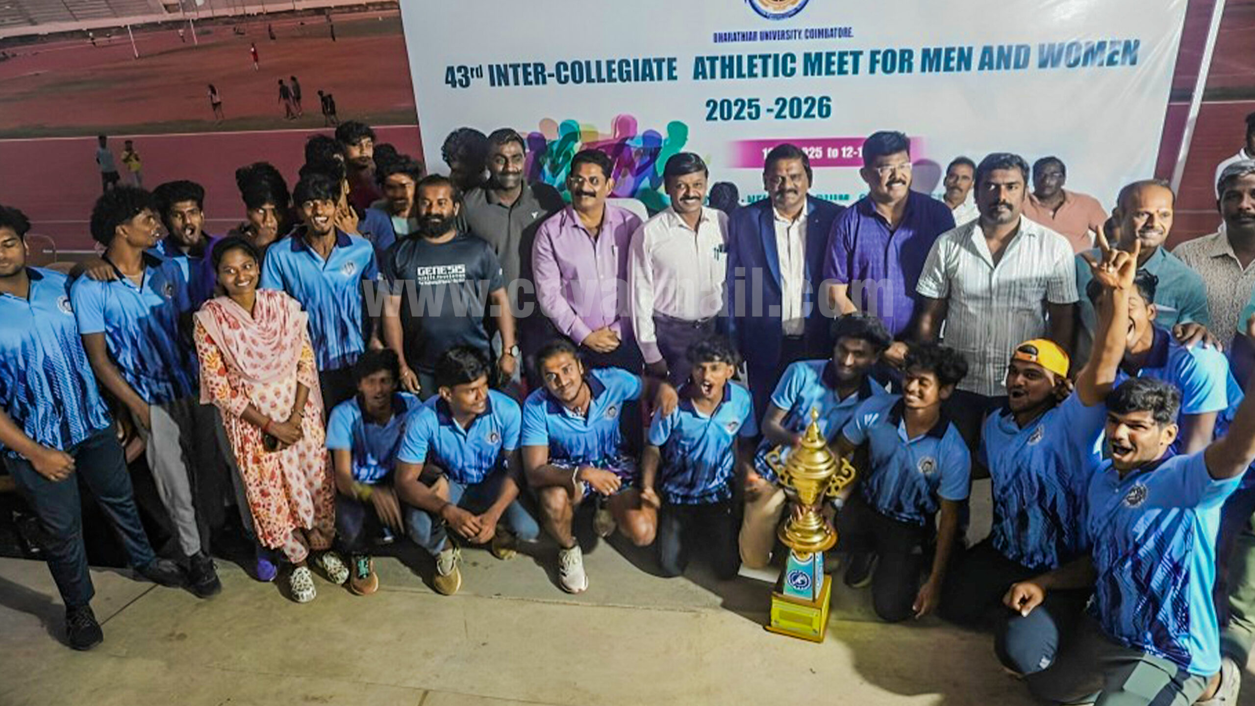 The Men’s Athletics team of Dr. NGP Arts and Science College created history by emerging as overall champions for the sixth consecutive year at the Bharathiar University Intercollegiate Men’s Athletics Championship, held at Nehru Stadium, Coimbatore, from 10 to 12 December 2025.