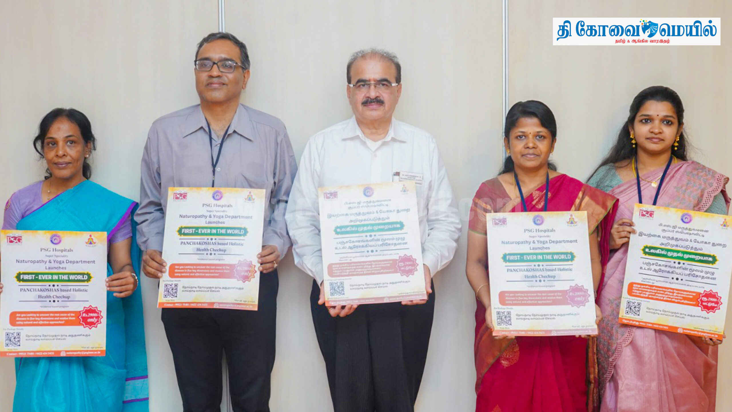 பி.எஸ்.ஜி. சூப்பர் ஸ்பெஷாலிட்டி மருத்துவமனையில் இயற்கை மருத்துவம் மற்றும் யோகா துறை சார்பில் உலகில் முதல் முறையாக பஞ்சகோசங்களின் அடிப்படையில் முழு உடல் ஆரோக்கியப் பரிசோதனை அறிமுகப்படுத்தப்பட்டுள்ளது.