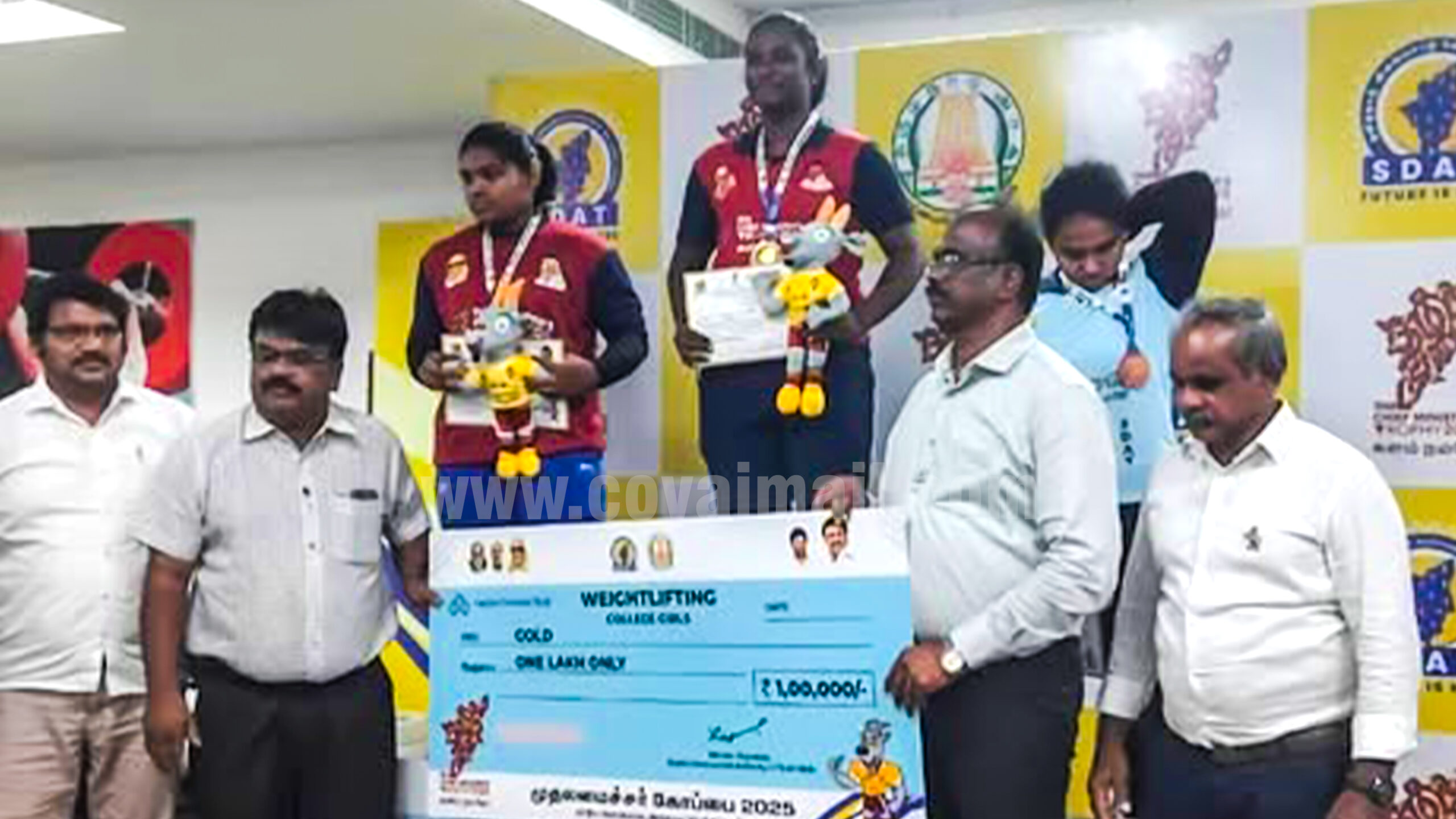 Monila, a second-year B.A. English Literature student at PSG College of Arts and Science, secured the Gold Medal in the 77 kg category at the State-Level College Weightlifting Women’s Championship for the Chief Minister’s Trophy 2025. The event was held at Jawaharlal Nehru Stadium, Chennai, from 5th to 7th September 2025.