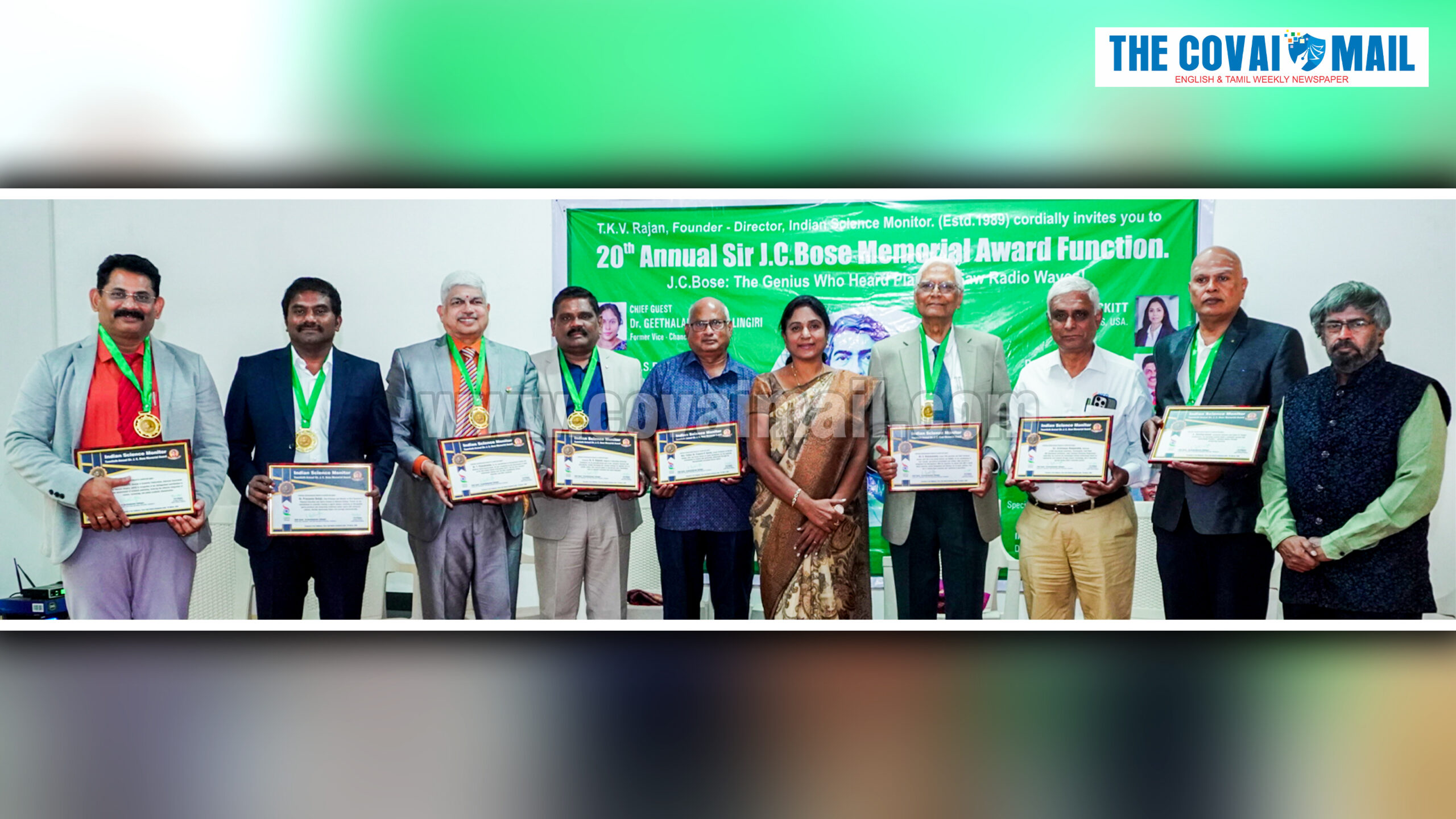 The 20th annual Sir J.C.Bose Memorial Award Function was held on Saturday at The Clubhouse in Parsn Sesh Nestle in Nanjundapuram.