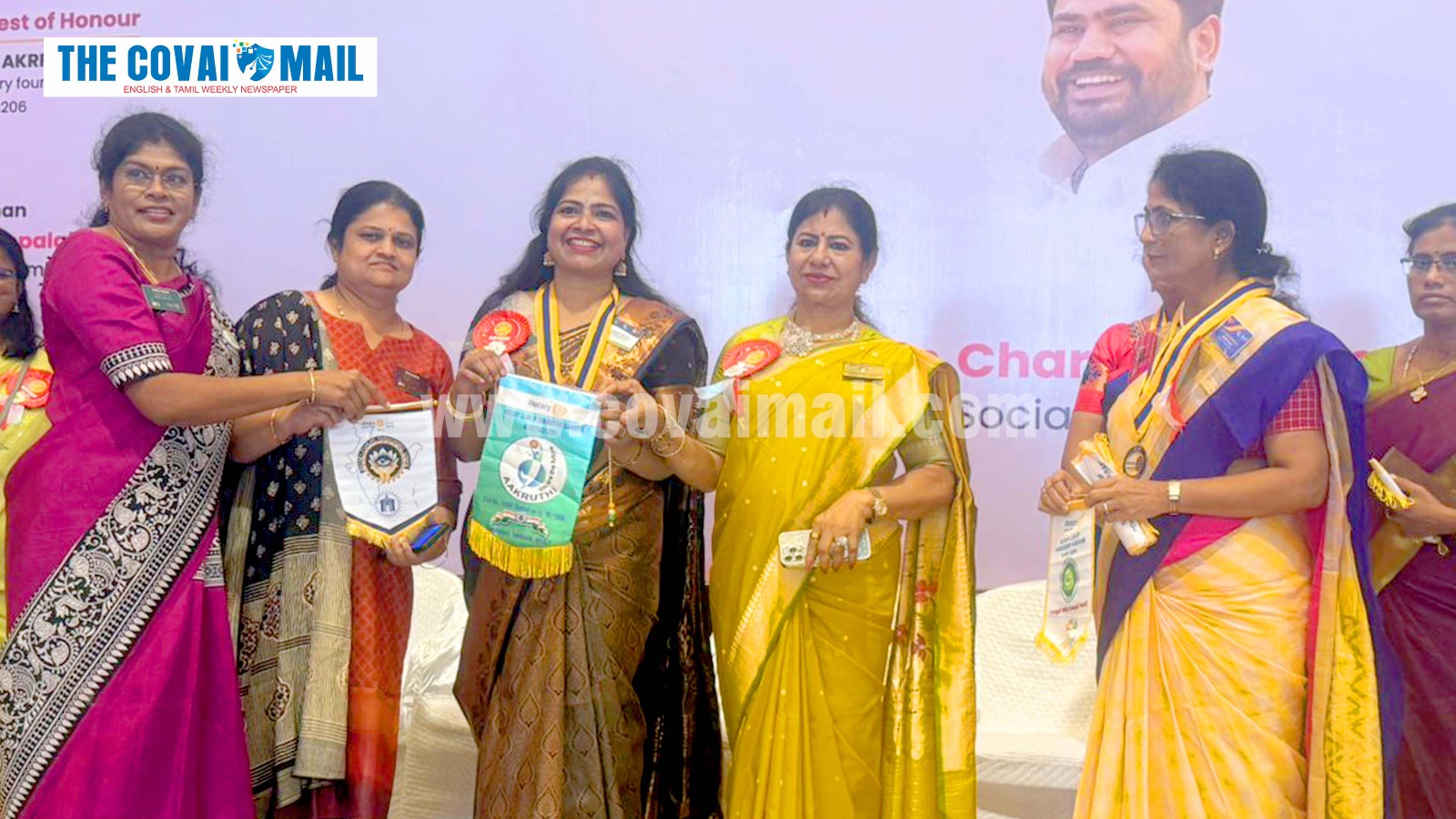 The Rotary Club of Coimbatore Aakruthi exchanged flags with the Rotary Club of Vision, Pondicherry, on 12 October 2025. Rtn. AKRFC Dr. Leema Rose Martin, Director of Martin Group of Companies, Rtn. Madhu Kannan, Club President; Rtn. Vidhya, Secretary, and other Rotarians were present at the event.