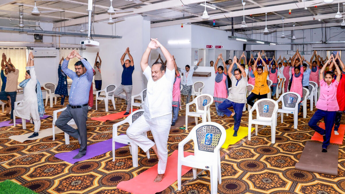 In observance of International Yoga Day, Royal Care Super Speciality Hospital celebrated the day on 21st June 2025. Dr. K. Madeswaran, Chairman and Managing Director, inaugurated the yoga program and highlighted the significance of incorporating yoga into daily life. He performed yoga alongside other doctors and faculty members of the hospital.