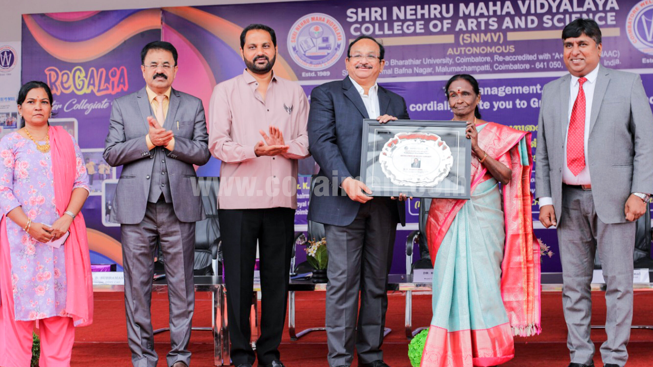 Shri Nehru Maha Vidyalaya (SNMV) College of Arts and Science, in association with the Valliammal Trust, jointly organised an award ceremony to honour Dr. Madeswaran, Chairman of Royal Care Super Speciality Hospital, Coimbatore, on 29th July 2025.
