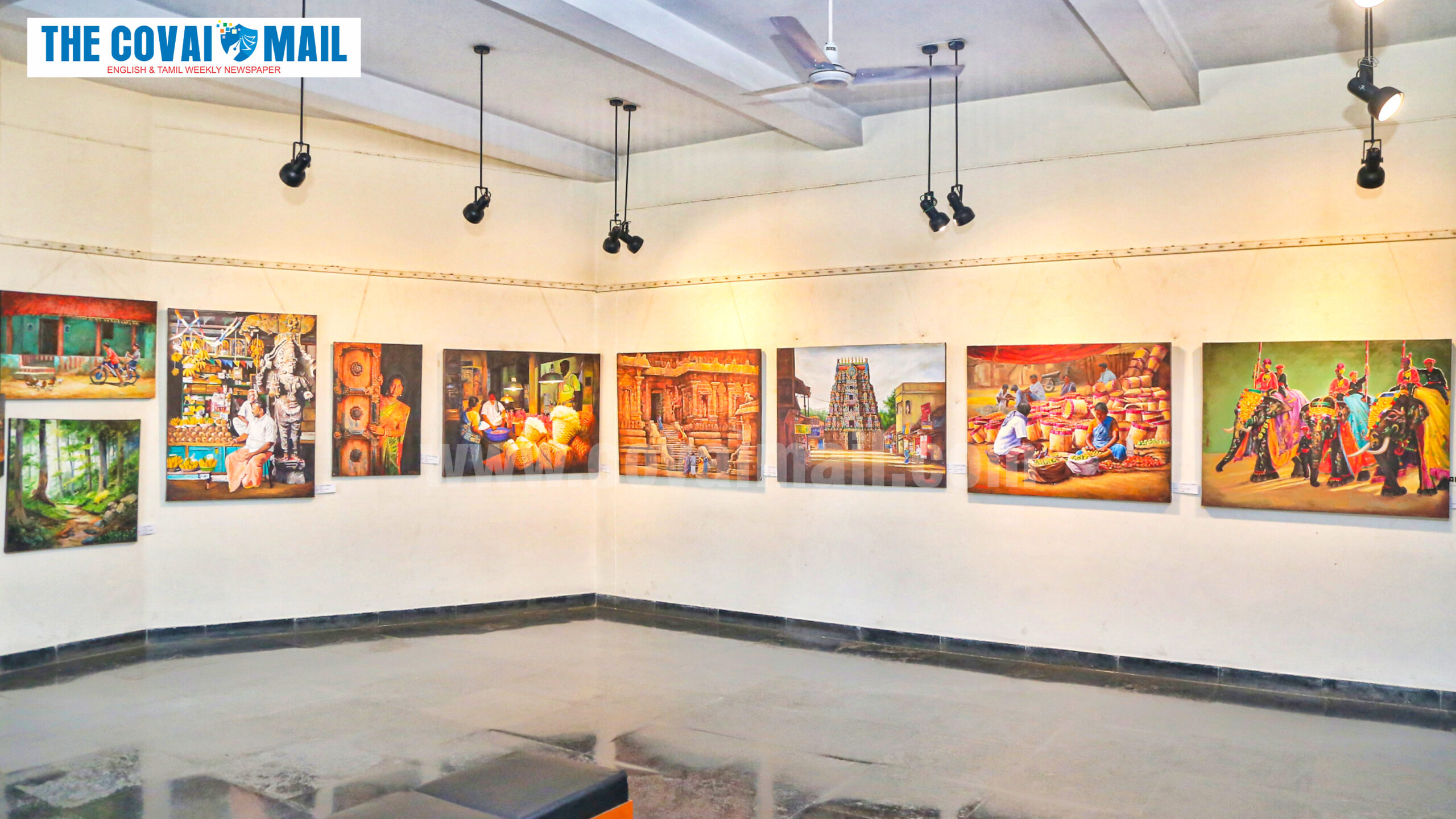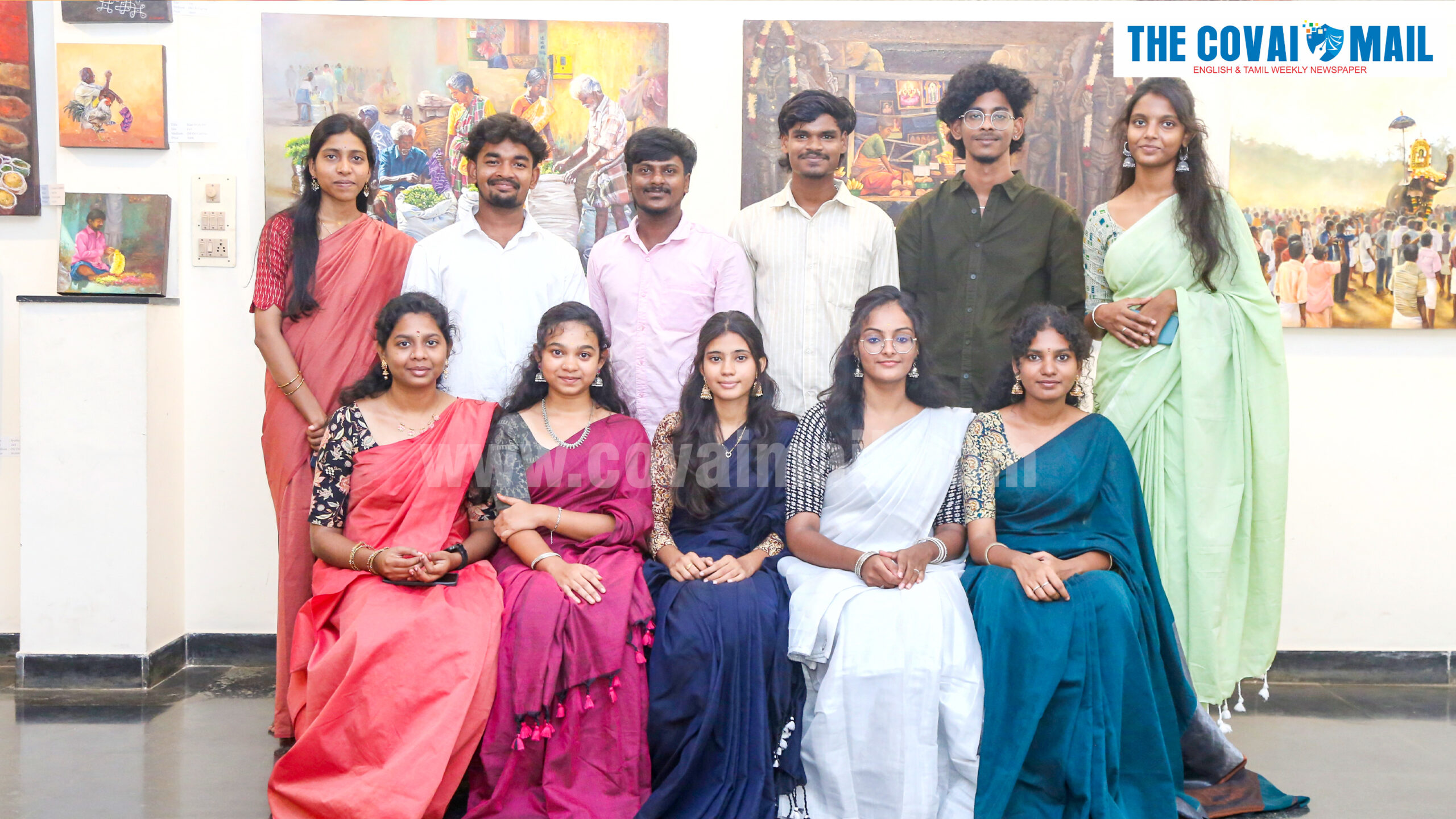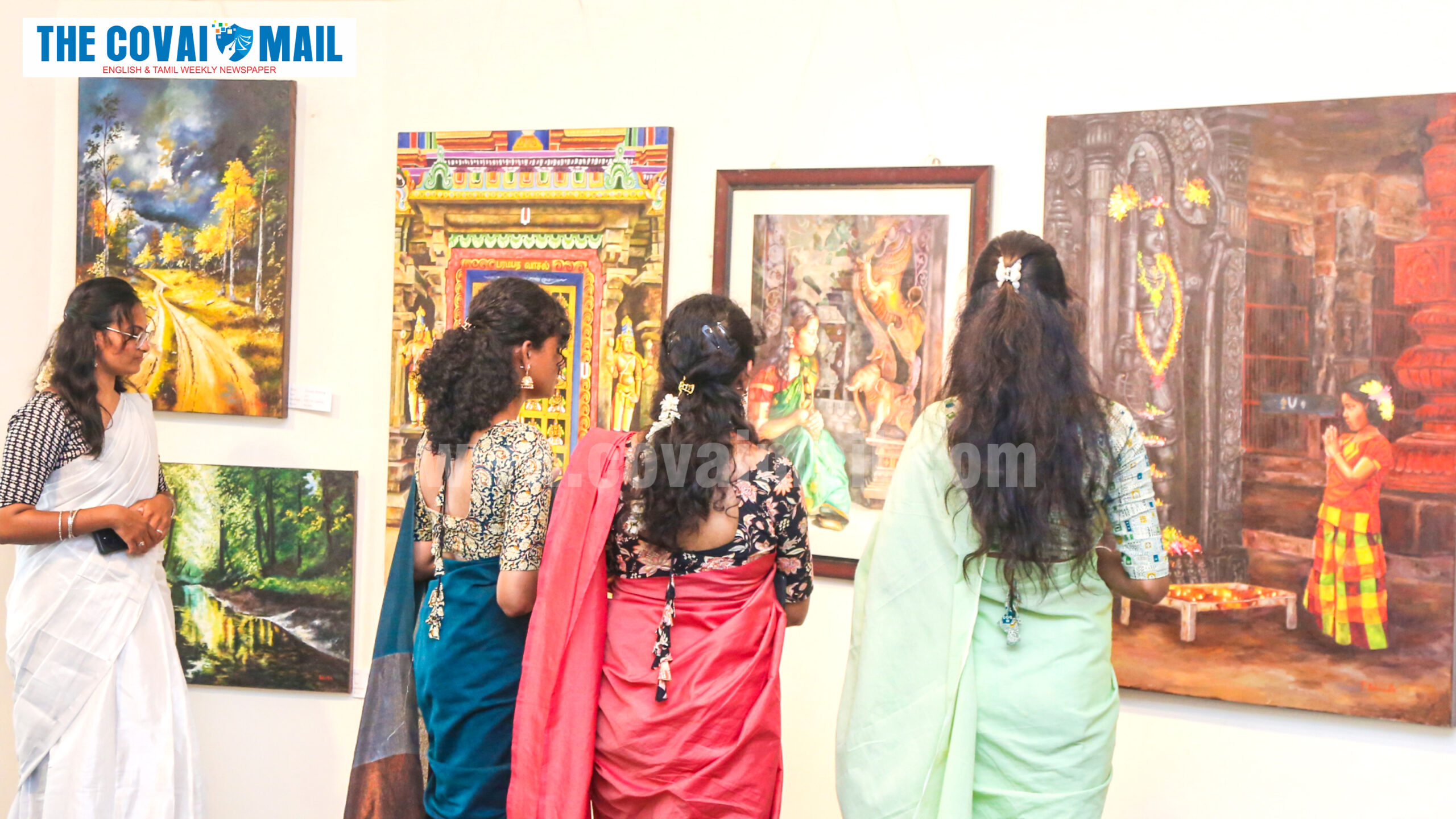 Kasthuri Sreenivasan Trust, Coimbatore, in collaboration with the Government College of Fine Arts, Kumbakonam, is organising a five-day painting exhibition titled ‘Futuristic’ from 8th to 12th October 2025 at the Kasthuri Sreenivasan Art Gallery. The exhibition was inaugurated today (8th October 2025) by the chief guest, Senthil Kumar, Managing Director of Advanced Clothing Concepts, Coimbatore. The exhibition showcases paintings created by students and is open to the public free of charge, from 10:00 a.m. to 6:30 p.m. on all five days.