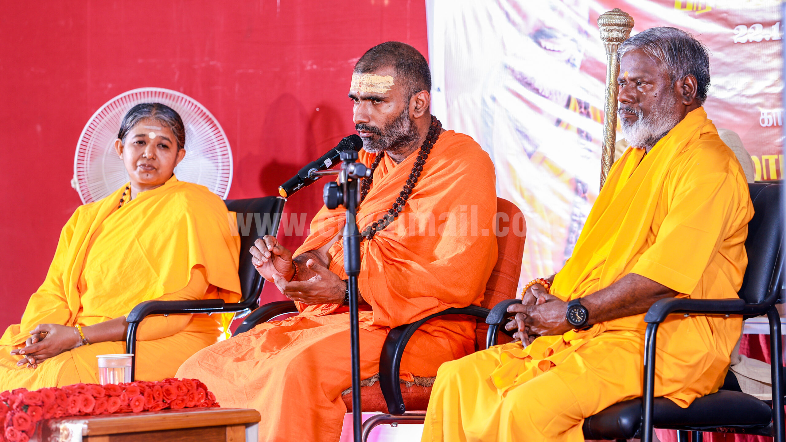 Kalika Peetham Juna Akhada Mahamandaleshwar Swami Anandavanam Bharati recently visited the Mata Amritanandamayi Math Brahmasthanam Temple at Nallampalayam, where he blessed devotees and addressed the gathering.
