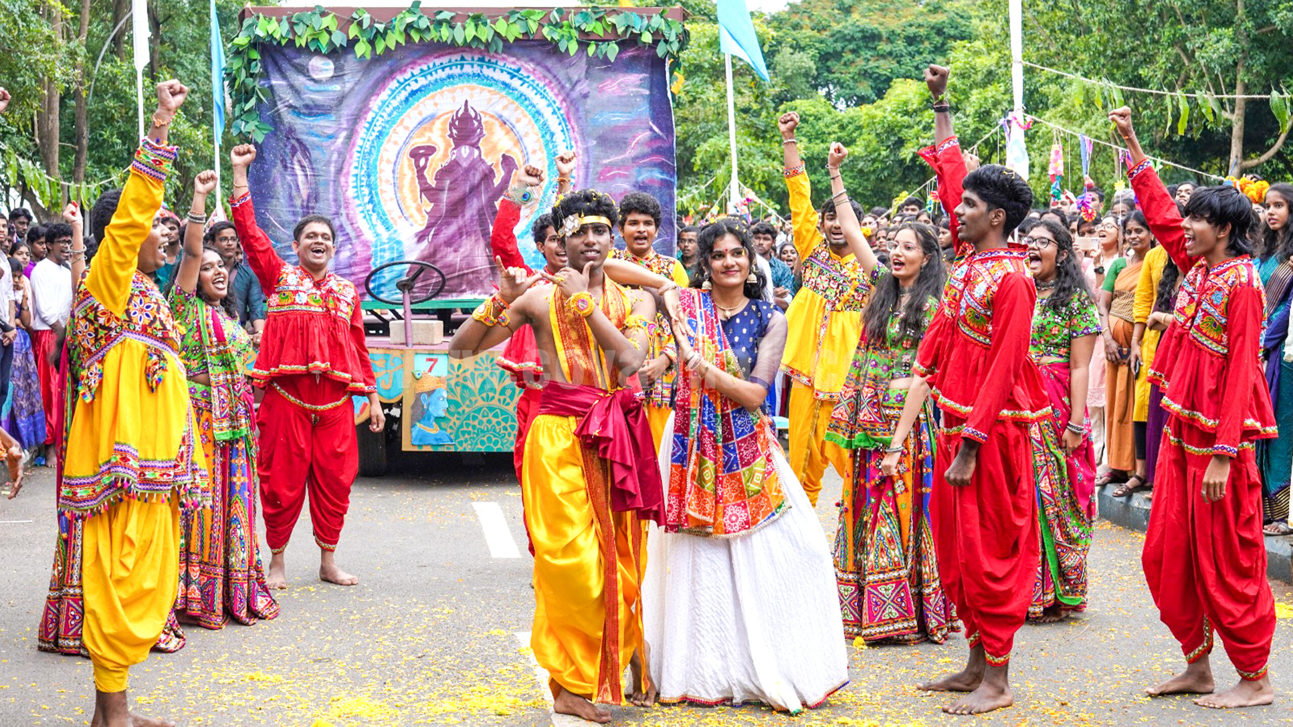 The final day began at dawn with Nagara Sankeerthanam, followed by a grand Krishna procession featuring a beautifully decorated float. Students, faculty, and devotees joined in singing bhajans, filling the campus with festive energy and spiritual fervour.
