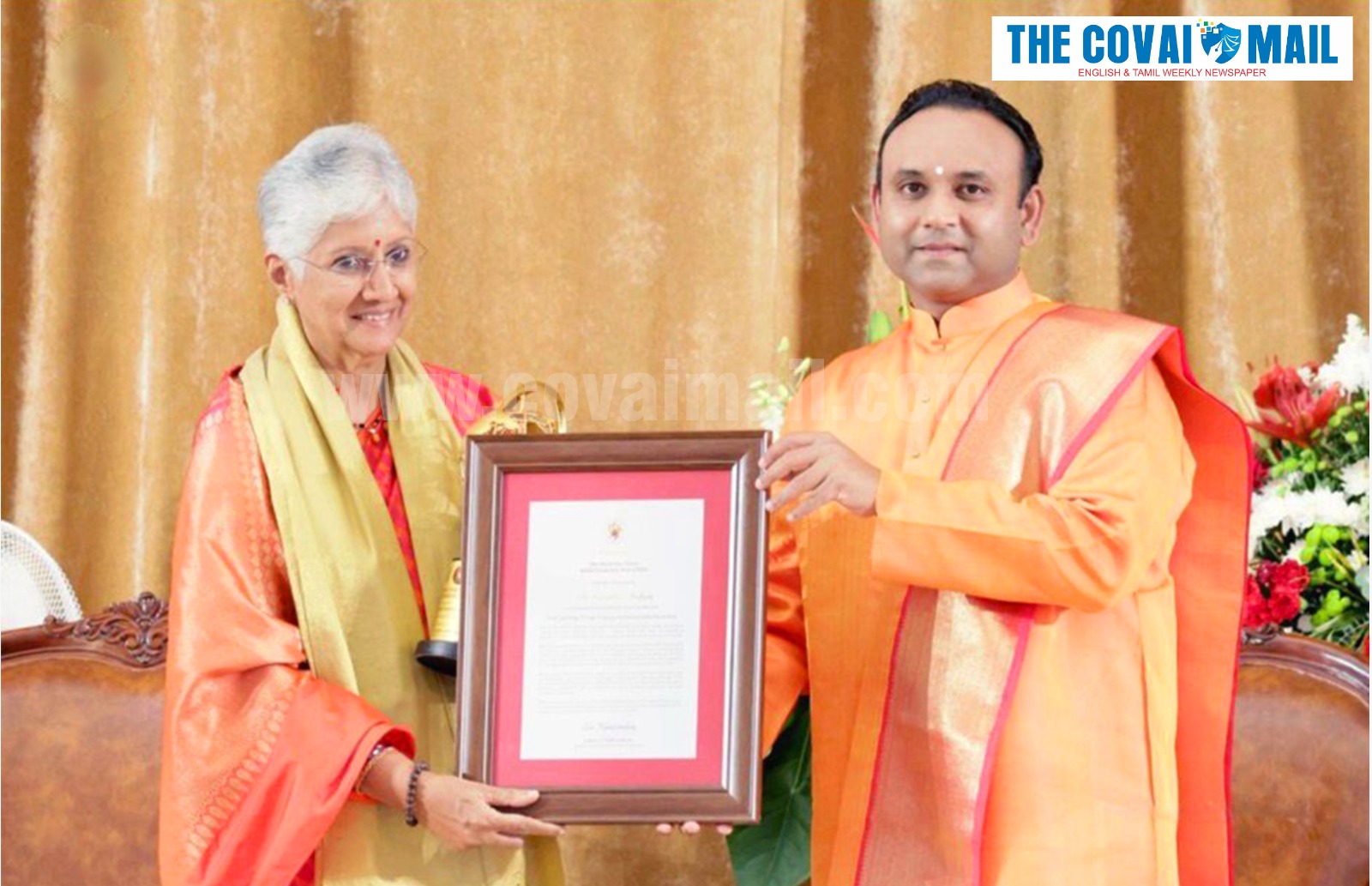 She received the award at the Sathya Sai Ashram in Bengaluru, as part of the centenary celebrations marking the 100th birth anniversary of Bhagawan Sri Sathya Sai Baba.